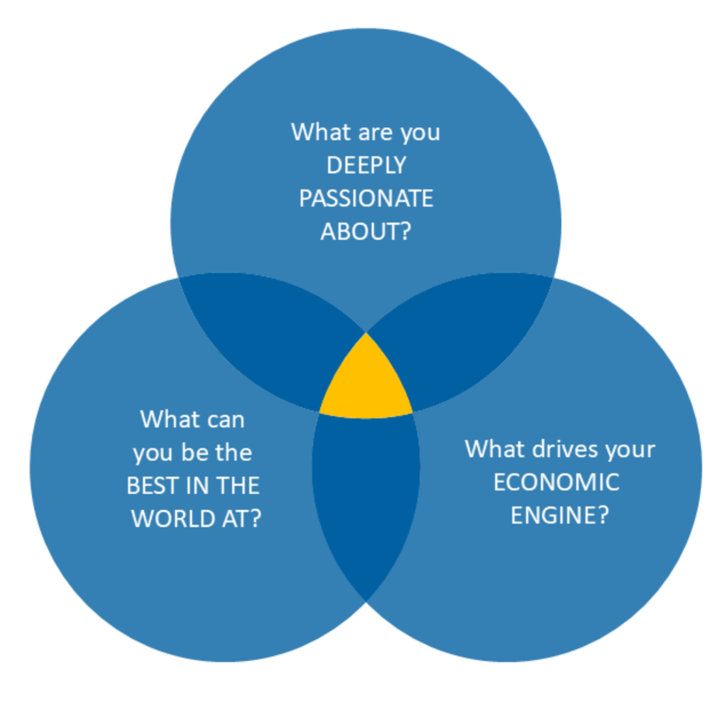 In the book, Jim Collins frames it like this… “To go from good to great requires transcending the curse of competence. It requires the discipline to say, ‘Just because we are good at it – just because we’re making money and generating growth – doesn’t necessarily mean we can become the best at it.’ The Hedgehog Concept is not a goal to be the best, a strategy to be the best, an intention to be the best, a plan to be the best. It is an understanding of what you can be the best at.”